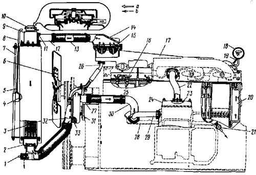 Закрыть кран 21 (см. рис. 17) слива охлаждающей жидкости из блока и кран 1 радиатора.