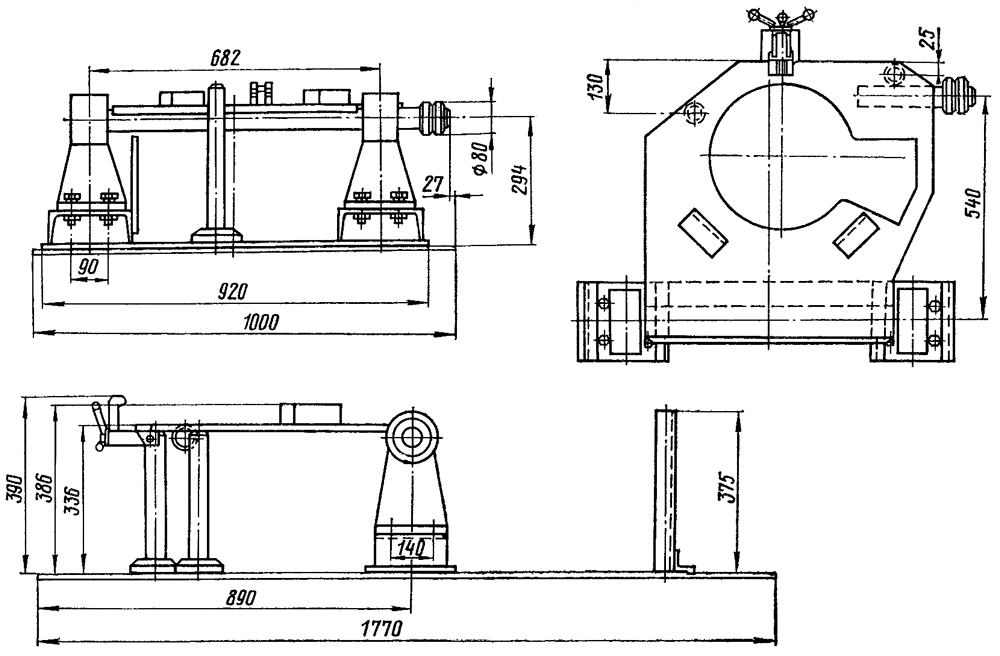 Застропите крышку за рым-болты, снимите вместе с валами и установите на специальное приспособление ( рис. 206 ) валами вниз. Поддомкратьте валы упорами, вращая рукоятки 8. Отверните два стопорных болта и гайку 11 ( см. рис. 205 ) с левой резьбой. Снимите фланец 13 со шпоночного соединения с помощью съемника.